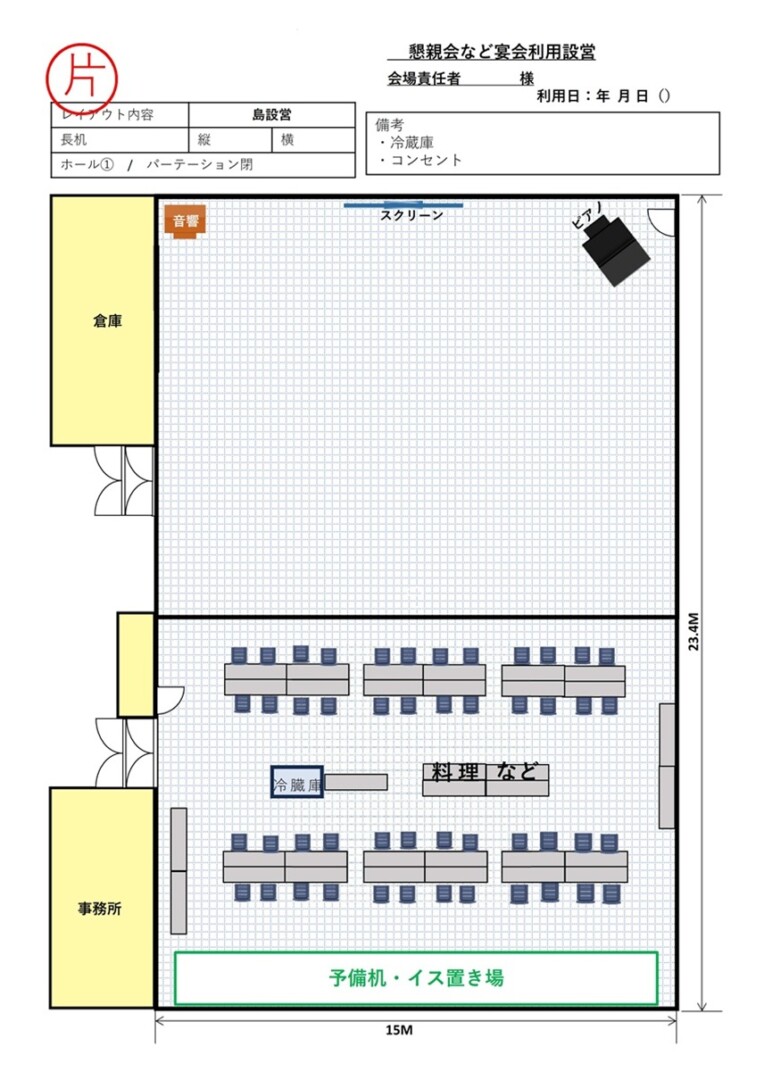 - 半室 会場イメージH 向かい合い(宴会) 島 48席